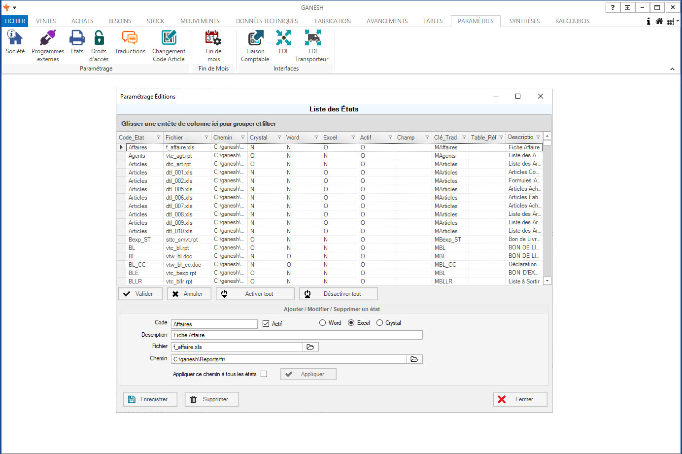 - Gestion des états et documents imprimables