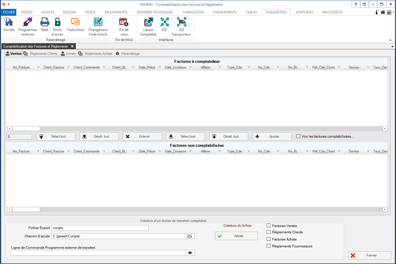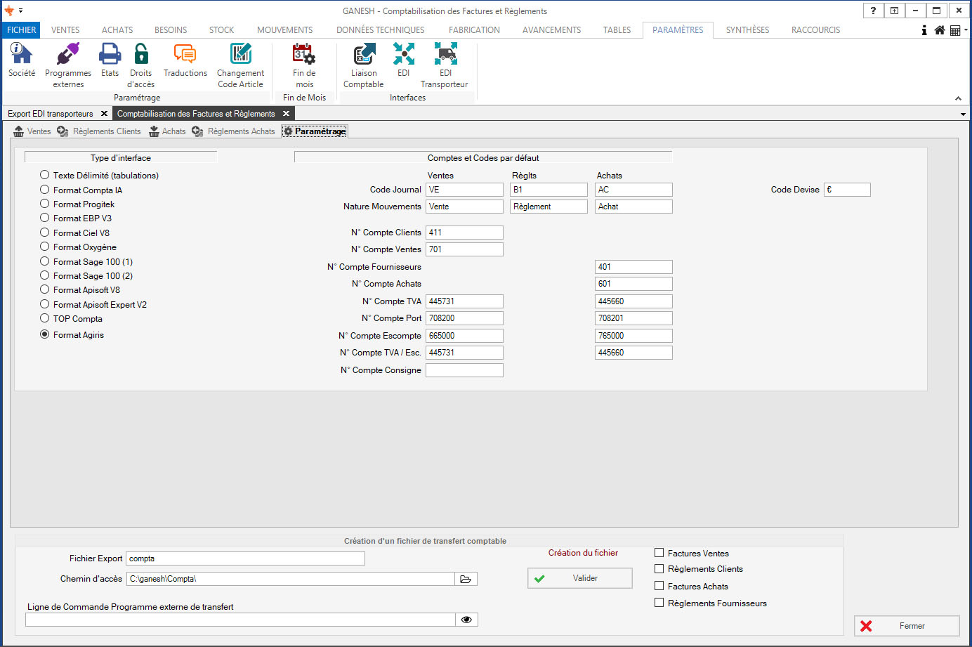 - Paramétrage de liaison comptable et export