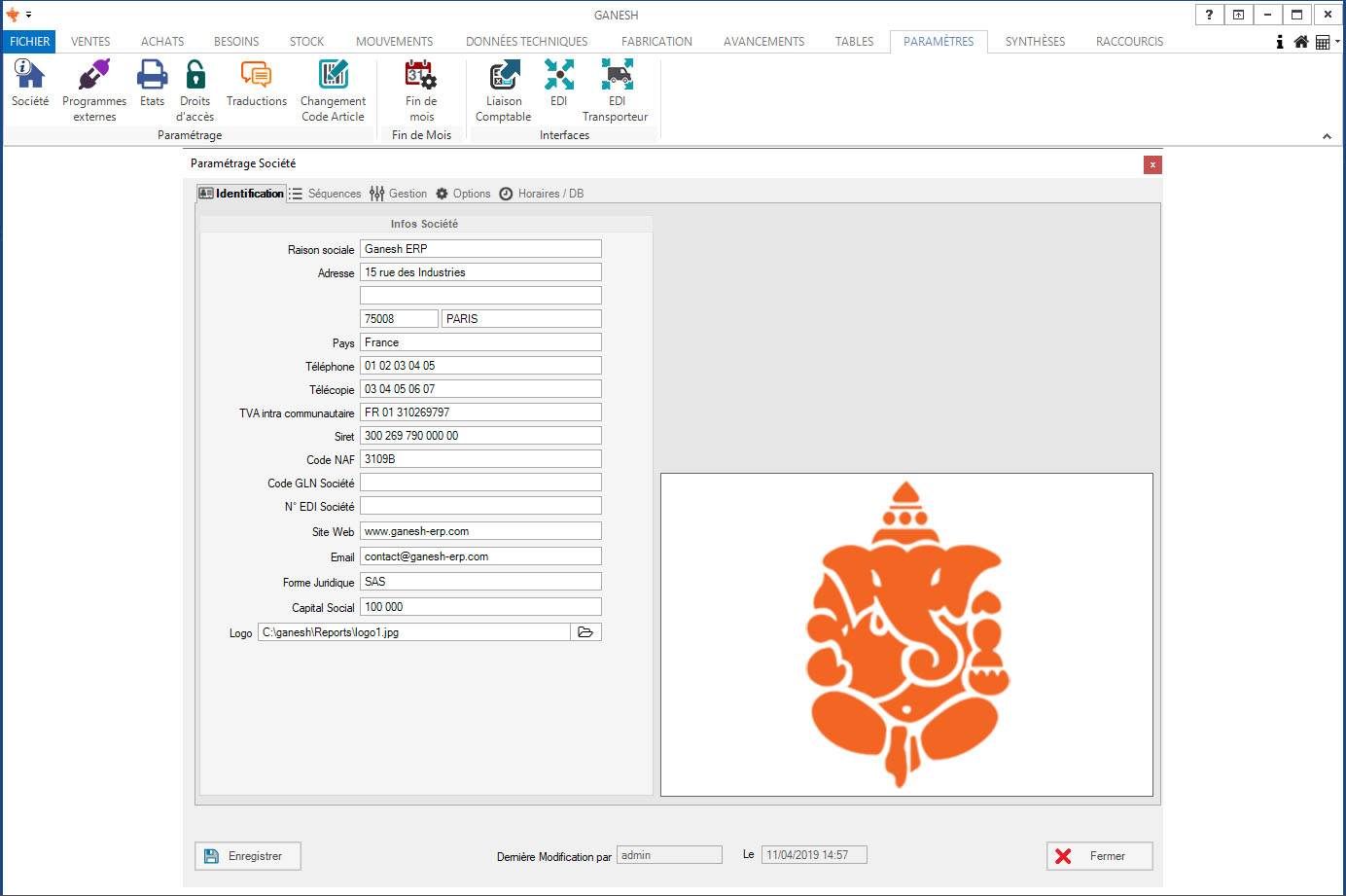 - Paramètres Société