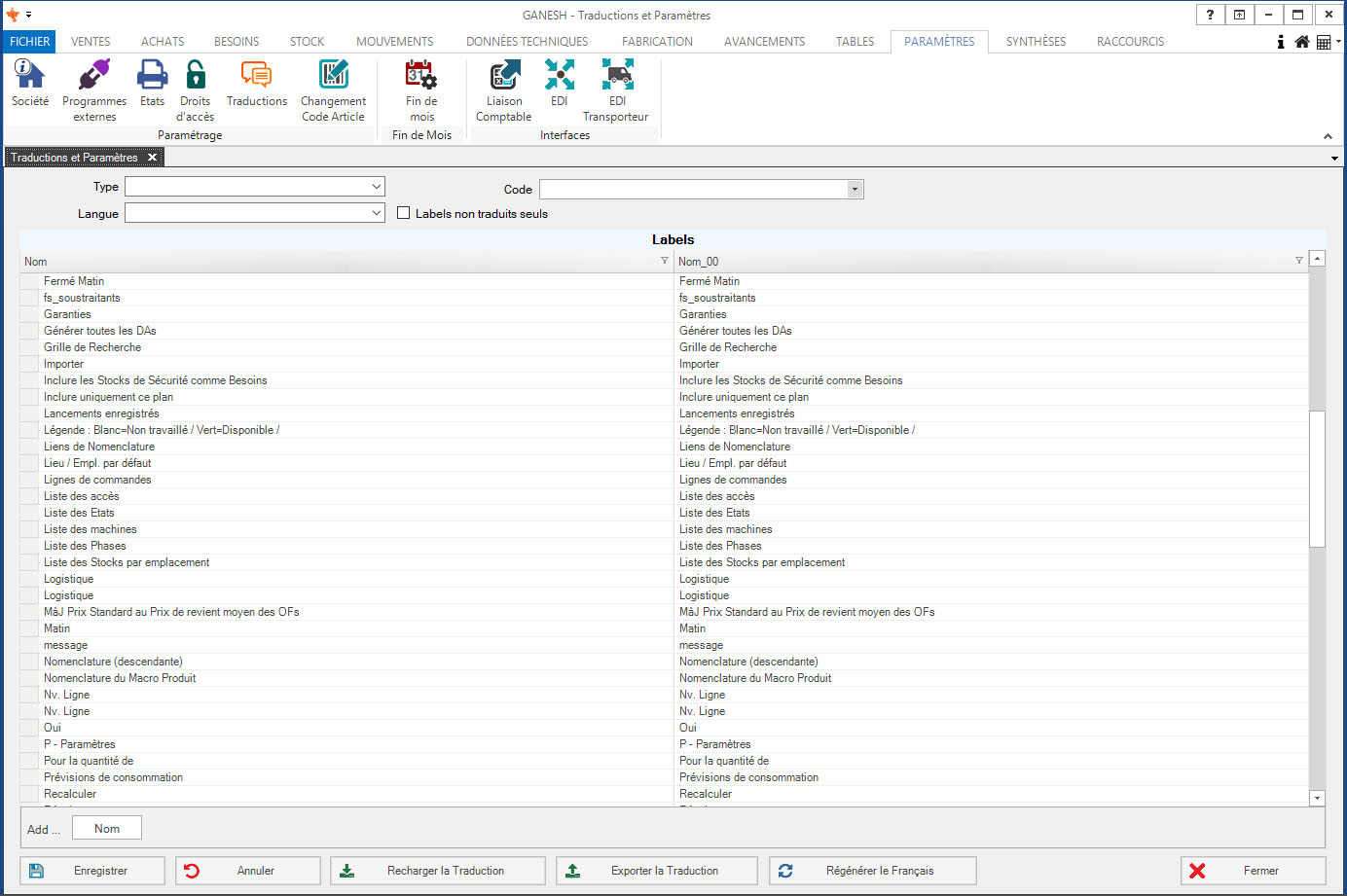 - Interface de traduction ou de modification des textes du logiciel