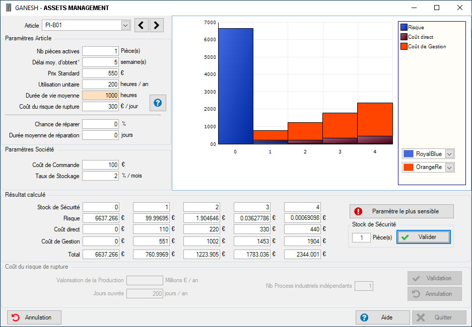 Le module Assets Management est une calculatrice qui permet de déterminer votre stock de pièces stratégiques en maintenance de votre outil de Production. Le module Assets Management vous permet de calculer de façon optimum le nombre de pièces nécessaires et de diminuez en conséquence votre stock de maintenance dans de fortes proportions.